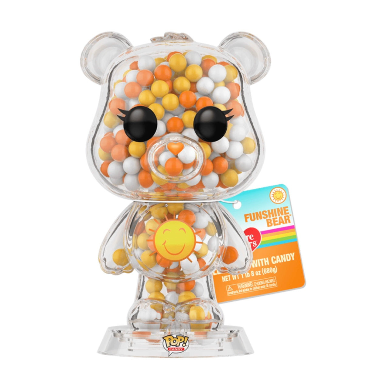 Treat your sweet tooth with Pop! Candy Funshine Bear™! This friendly bear is here to help brighten your day and energize your Care Bears™ set. This collectible features a clear, molded casing filled with vibrant orange, yellow, and white, pressed sugar candies! This candy container is made with BPA free plastic and snaps open at the figure’s base for on-the-go snacking convenience! Whether you choose to open and enjoy or display sealed, Pop! Candy figures will add a bit of flavor to your collection and your palate! Plastic figure is approximately 4.15-inches tall.