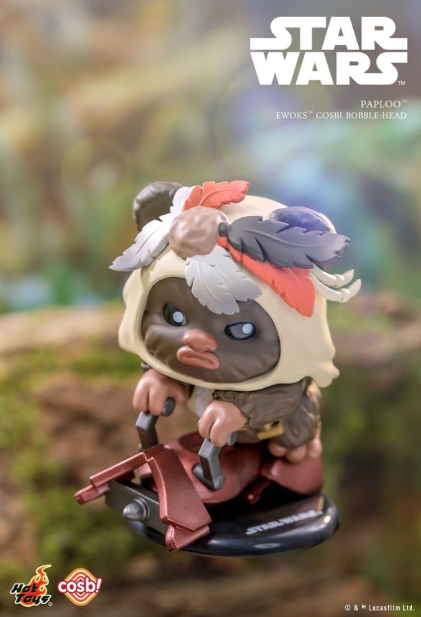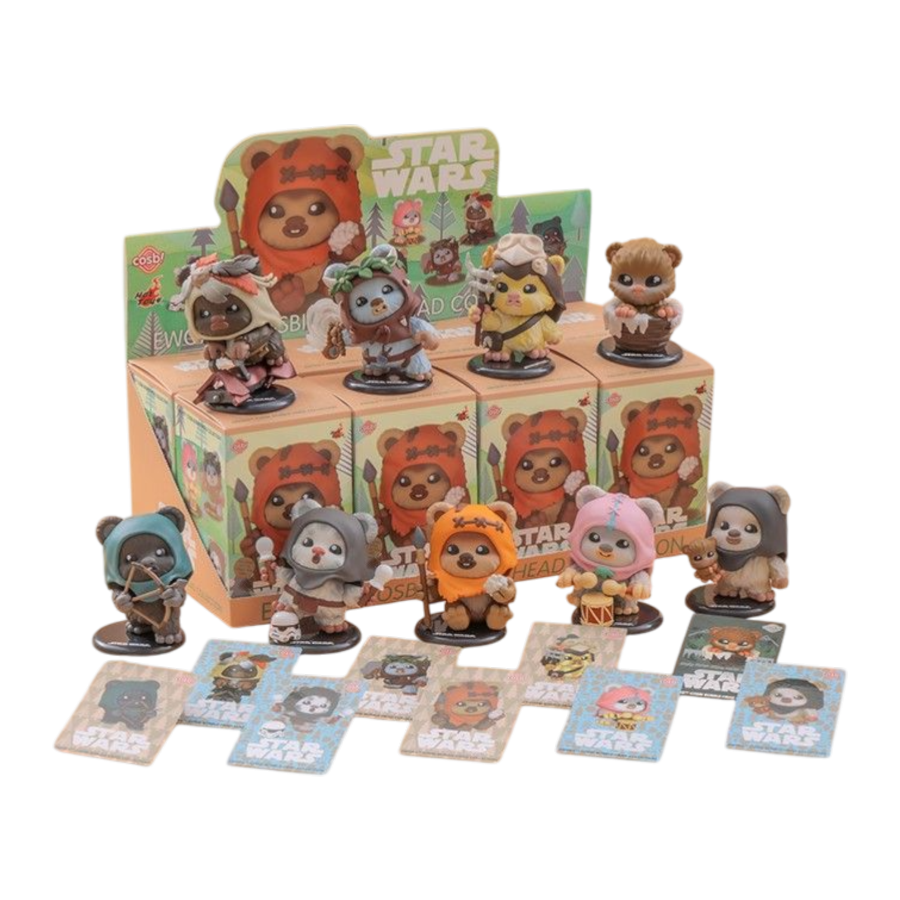Each random package box includes an approximately 7 - 8.5 cm tall Ewoks Cosbi collectible and a special collection card. It comes sealed in a foil bag and is blind boxed to preserve the rarity and collectability of the series. Available in selected markets only.