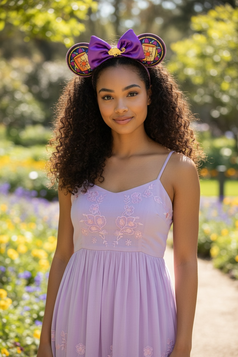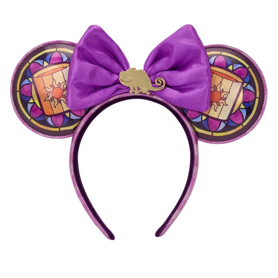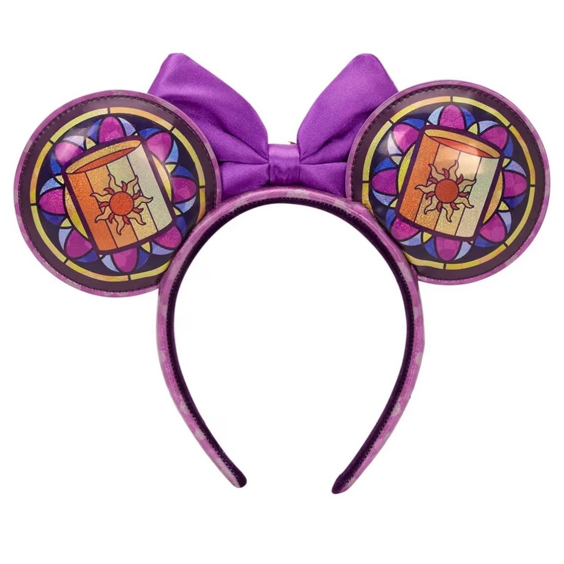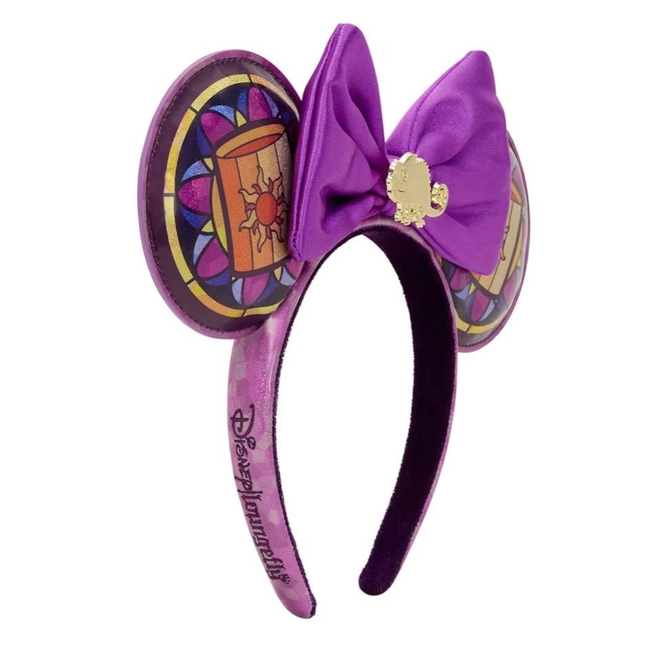 - From Disney's Tangled, this headband with ears features a beautiful Rapunzel-themed stained glass motif!