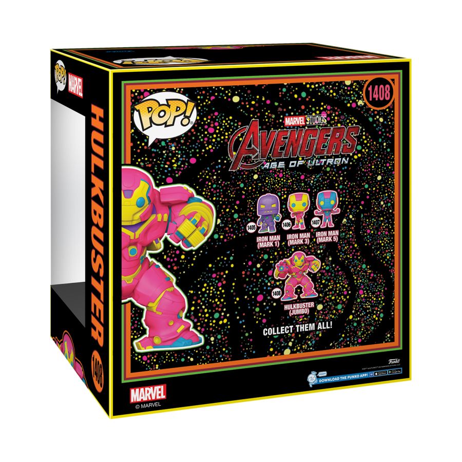 Complete your Infinity Saga collection when you give this exclusive, black light, Jumbo Pop! Hulkbuster a place to land in your Marvel Studios' Avengers: Age of Ultron collection.