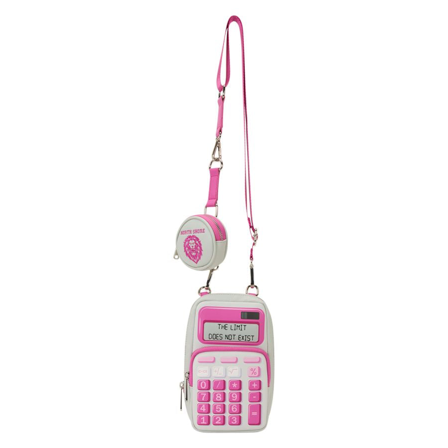 This bag is in the shape of a calculator. You'll find the calculator buttons over the front pocket. Above is the calculator screen that says, "The Limit Does Not Exist." Turn it around to find a math equation written on the back. Plus, there's a detachable coin bag on the strap that says "North Shore" with the mascot on it!