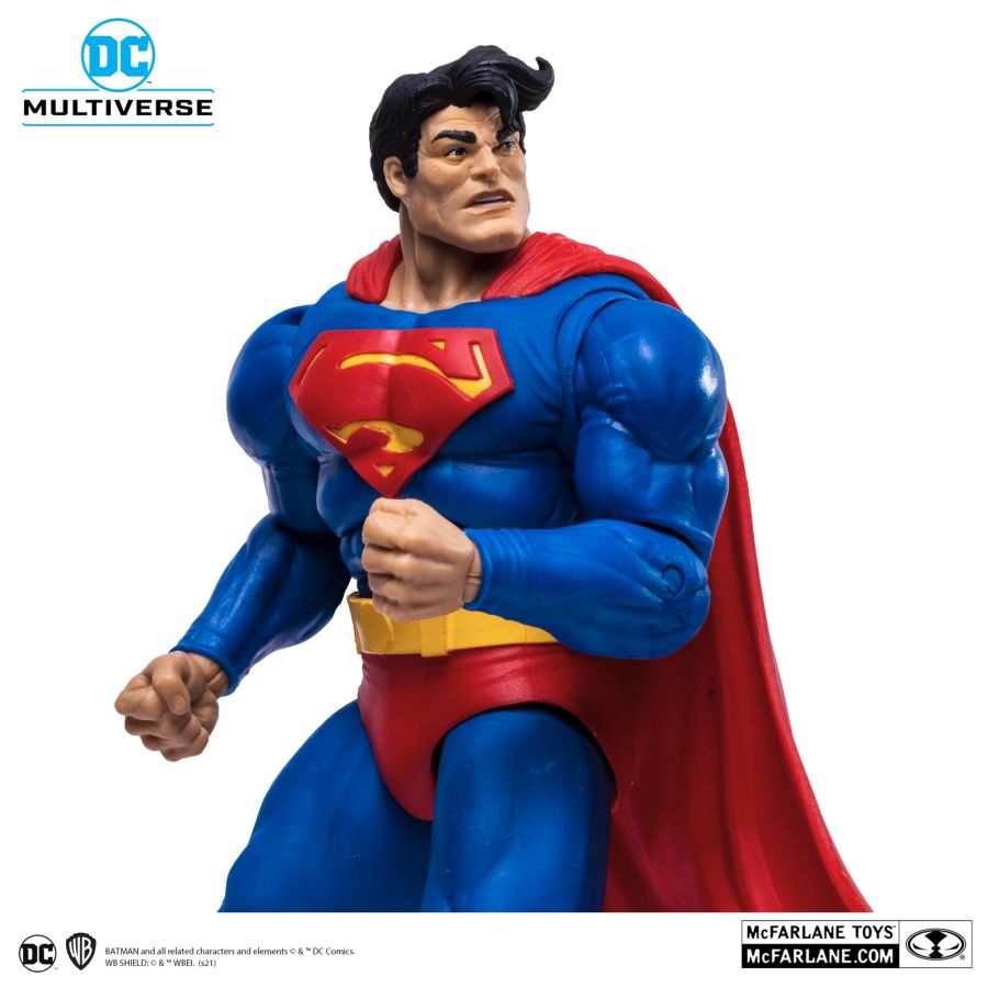 - Superman and Batman are featured in their look from their fight in the comic The Dark Knight Returns