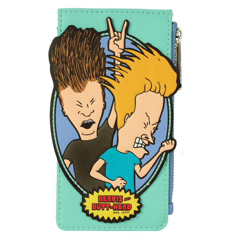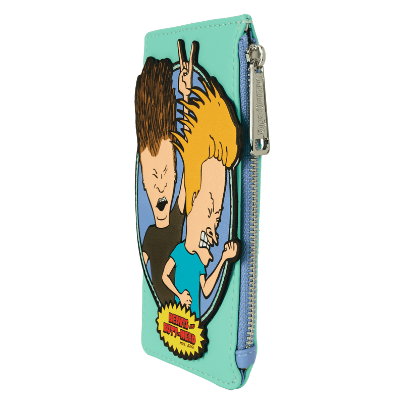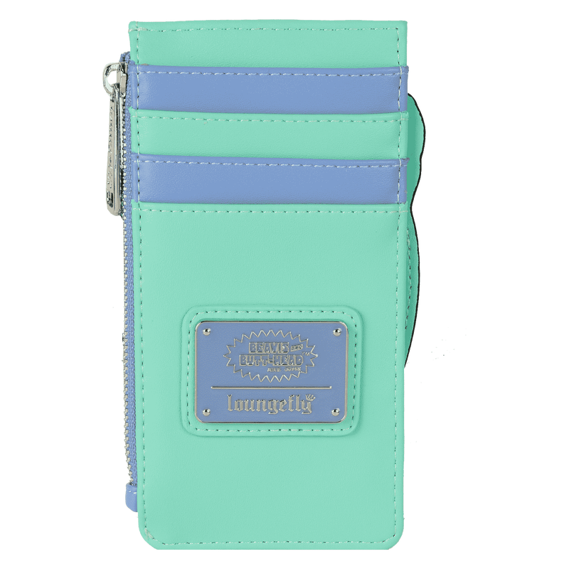 On it, you'll find Beavis and Butt-Head jamming out together with the show title beneath them. Turn the card holder around, and you'll find four card slots and a zippered compartment to keep things secure.