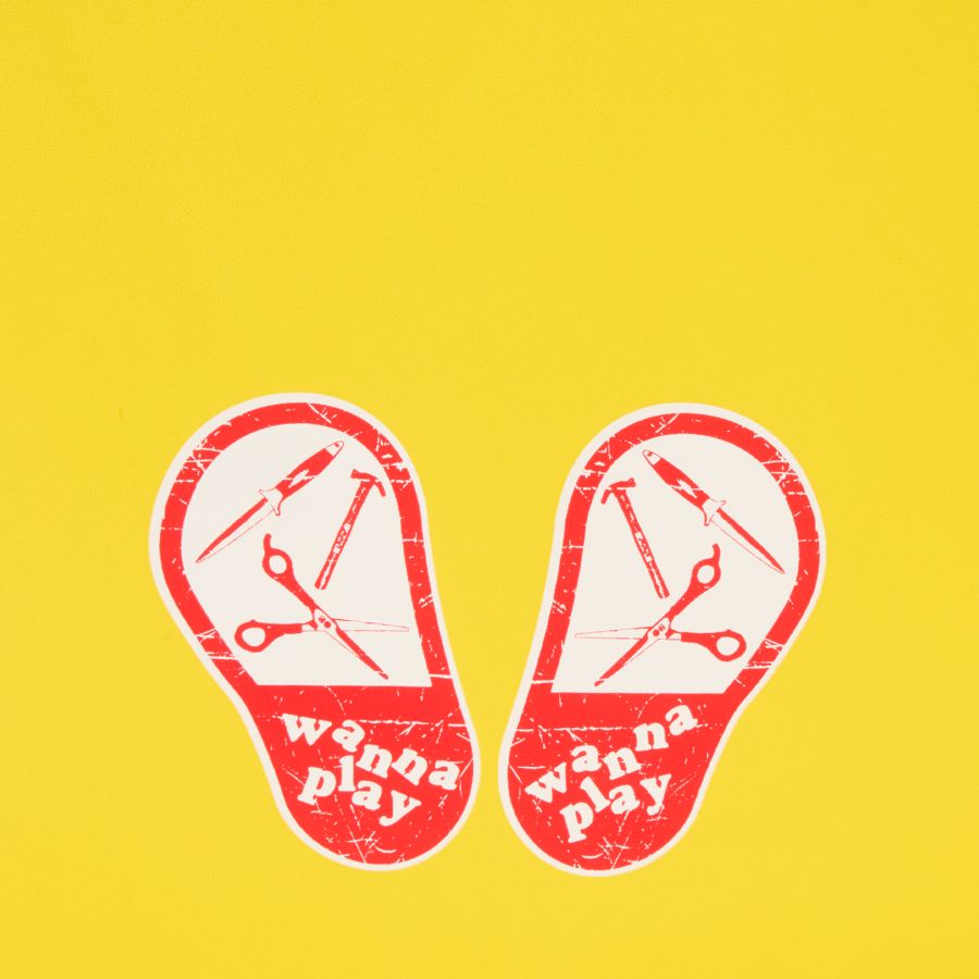 - Vegan leather (polyurethane) in bright yellow with red trim