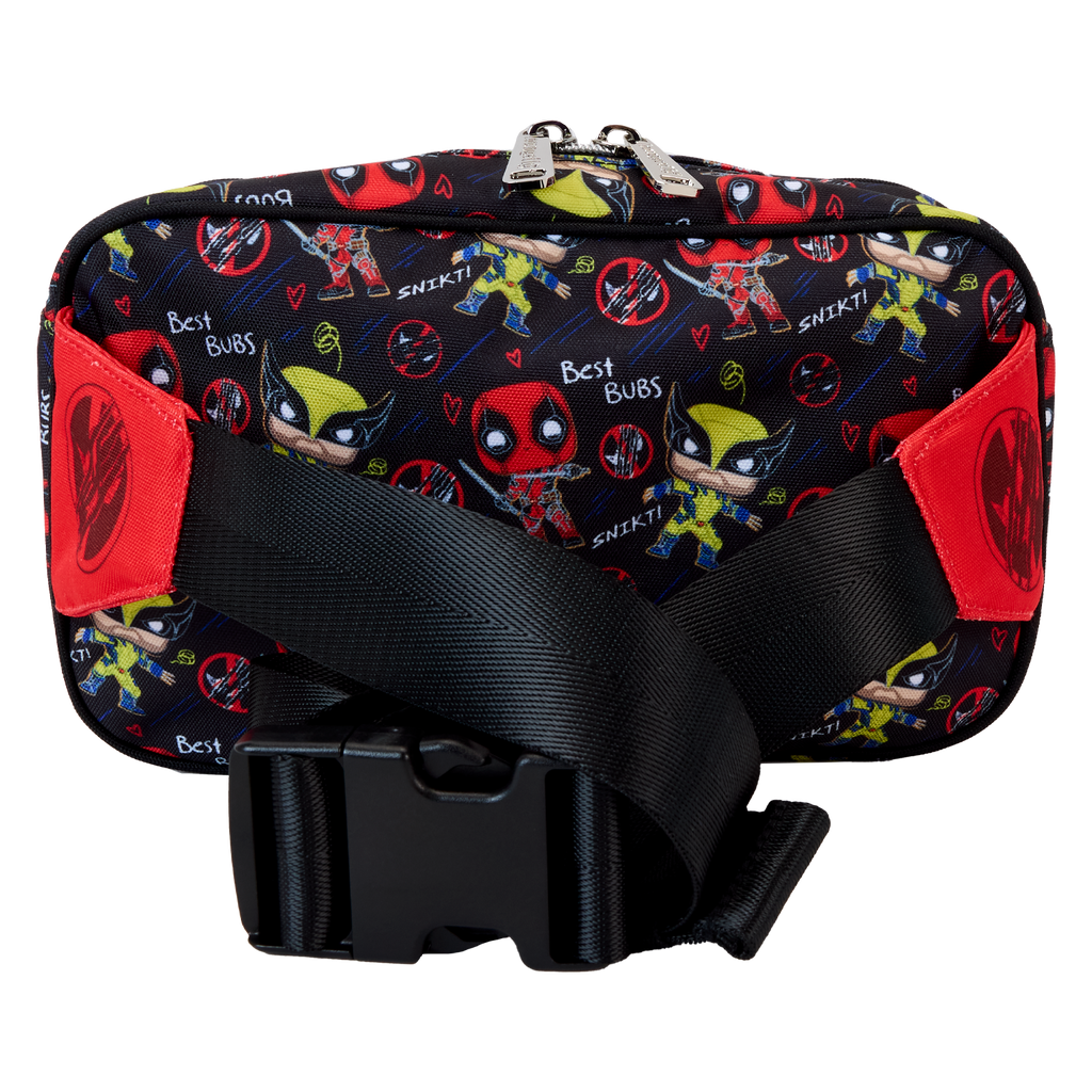 Suit up alongside Marvel’s mutant besties with the Funko Deadpool & Wolverine Belt Bag! This stylish accessory features a “Best Bubs” motif of POP! Deadpool and POP! Wolverine against a red and black background. With a handy front zipper pocket, this Belt Bag has plenty of room for holding all of your gear on your next mission!