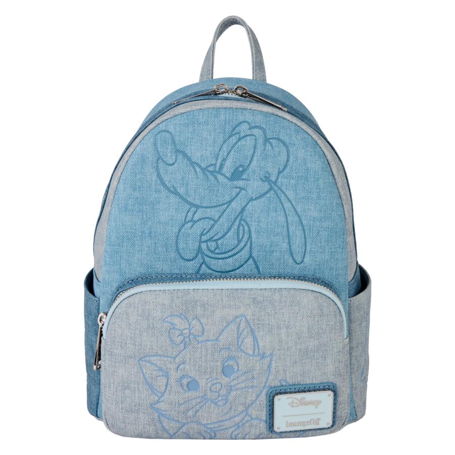 This faux denim mini backpack celebrates all the adorable Disney cats and dogs. They're debossed onto the bag for a toned down look that'll coordinate with any outfit in your closet.