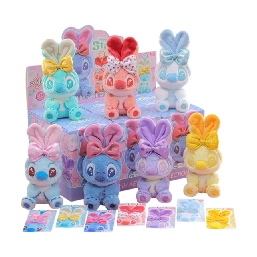 These keychains come adorned with a matching ribbon, making them perfect companions for your keys, bags, or anything you hold dear. Each random package box includes a Stitch Cosbi Plush Keychain and is blind boxed to preserve the rarity and collectability of the series.