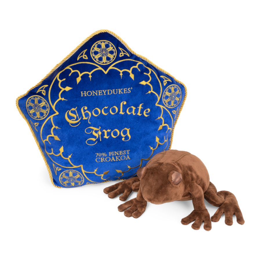A plush version of Chocolate Frog, first seen in Harry Potter and the Philosopher’s Stone (2001), offered with a plush blue velvet Honeydukes Sweetshop branded cushion.