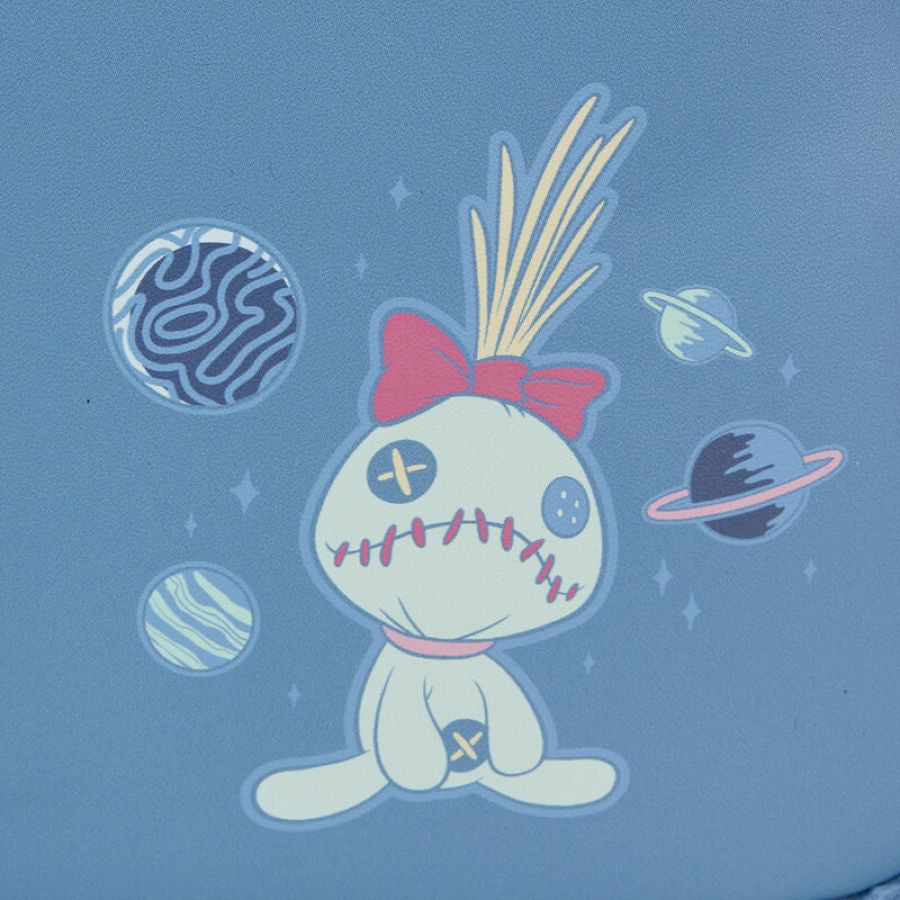 Need to escape? Our Loungefly Disney Stitch Plush Pocket Mini Backpack makes the perfect accomplice! This mini backpack is covered in blue sherpa material, and Stitch’s adorable face appears on the front. Just under his chin, you’ll find a zipper compartment for storing smaller items on your journeys. And, just under his paws, you’ll find another pocket. An invisible magnetic snap allows the paws to stay up while you secure your items. Applique ears poke out on the sides, and Stitch’s face comes to life in embroidered and applique details. On the back, you’ll find Scrump, surrounded by planets. Embrace your journeys in style with this fun and versatile accessory.