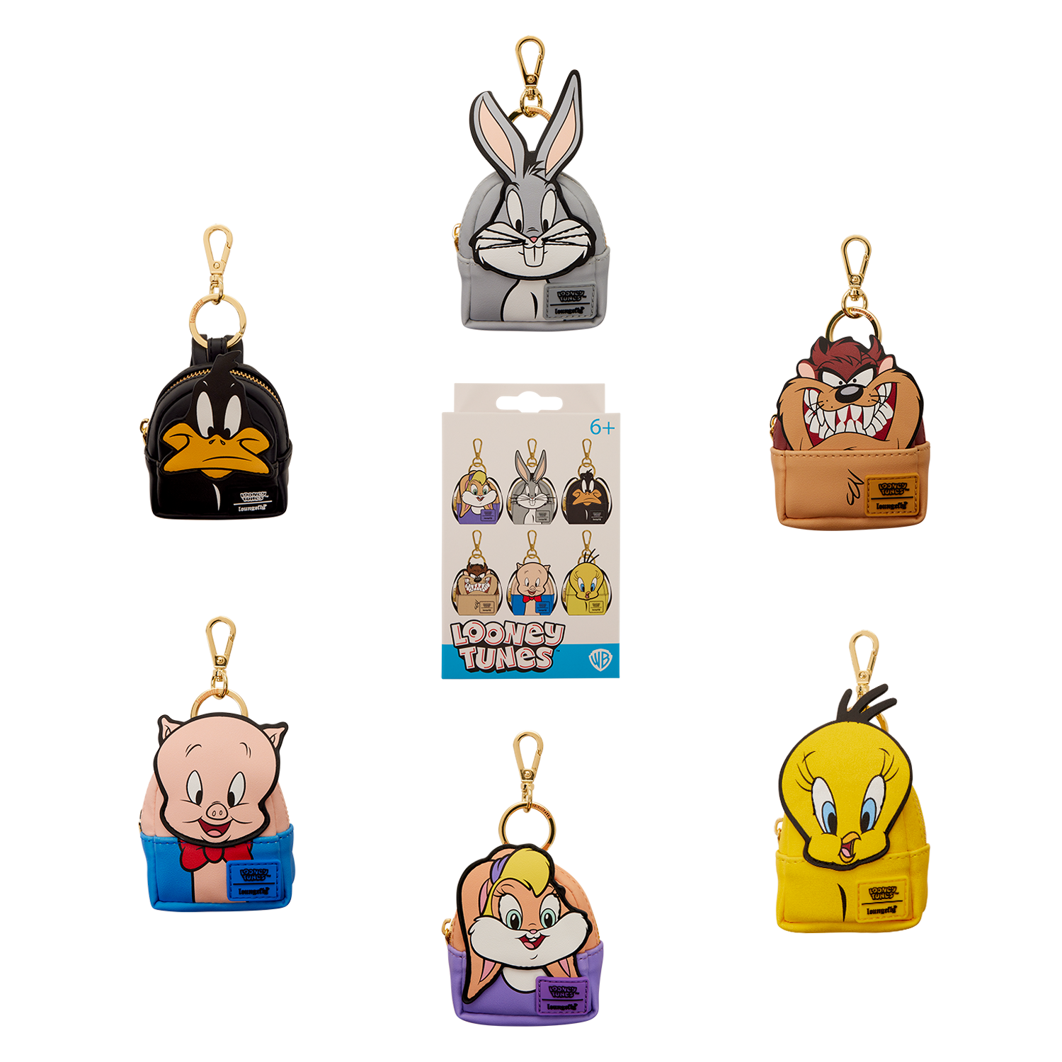 Each of these comes in mystery packaging, so you don't know which you'll get! There are six in total to collect: Lola Bunny, Bugs Bunny, Daffy Duck, Tasmanian Devil, Porky Pig, and Tweety Bird. Collect them all and accessorize your accessories with your fav Looney Tunes characters!