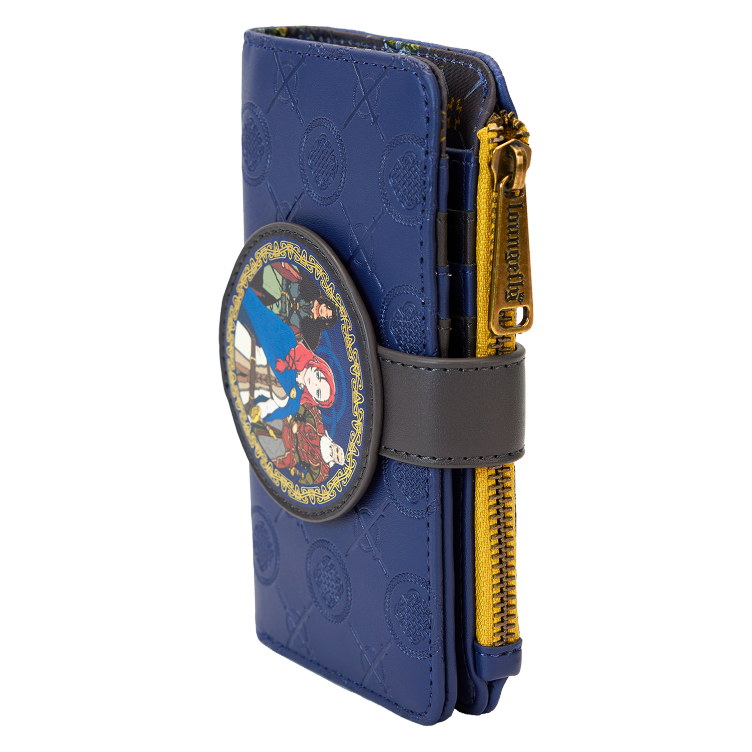 Arise and ride off to defend Rohan in style! Our The Lord of the Rings: The War of the Rohirrim bifold wallet is ready for adventures. An all-over debossed pattern of crossed swords and emblems, which blends in with the royal blue background, adds an elegant nod to the fandom. The front snap features a circular applique with a vivid print of fan-favorite characters, including Hèra, Wulf, and Helm Hammerhand. Flip the wallet around, and you’ll find the words, “You could rule the world.” Secure your valuables for a day-trip to Middle-Earth in the latest fashion.