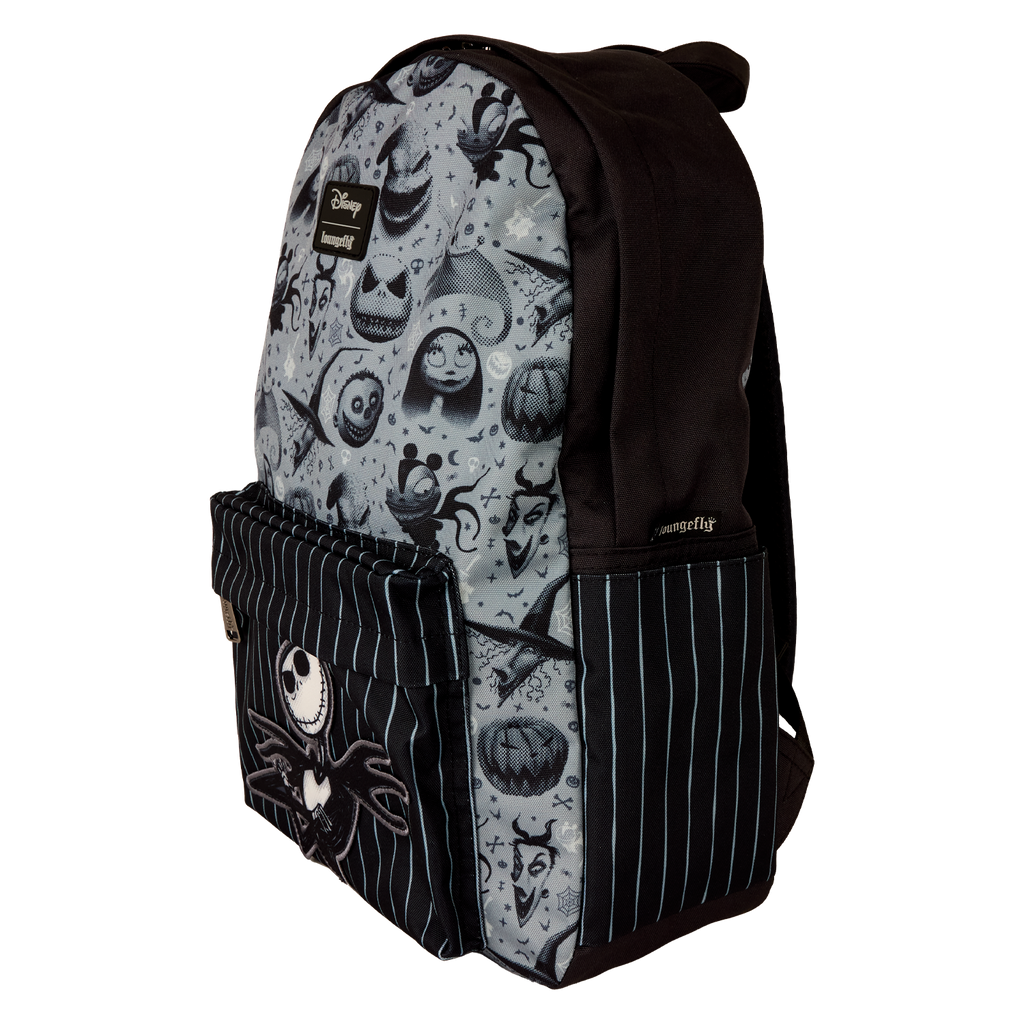 This full-size backpack pays tribute to everyone's favorite Pumpkin King! You'll find Jack Skellington on the front pocket against a black-and-white striped background. All over the front of the bag, you'll find images of some of your favorite characters from Halloween Town, including Jack, Sally, Oogie Boogie, and more!