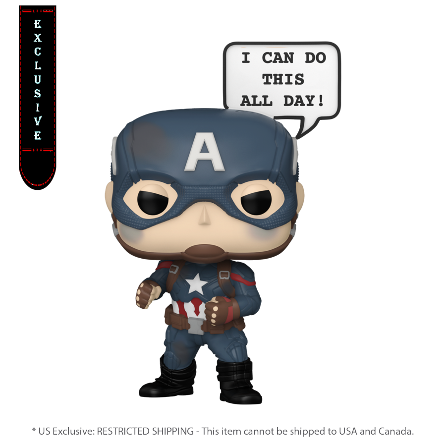 Commemorate an iconic Infinity Saga quote with this exclusive POP! Captain America, featuring the line "I can do this all day!" printed in a speech bubble!