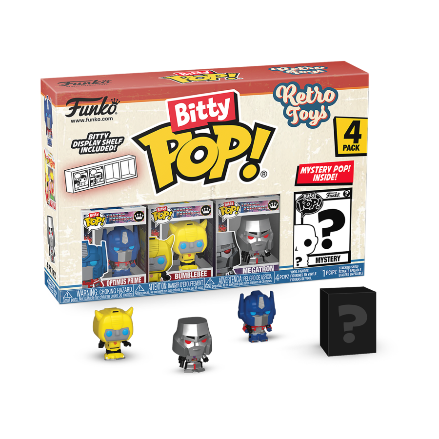 This 4-pack includes Bitty Pop! Optimus Prime, Bitty Pop! Bumblebee, Bitty Pop! Megatron and a mystery Bitty Pop! figure.