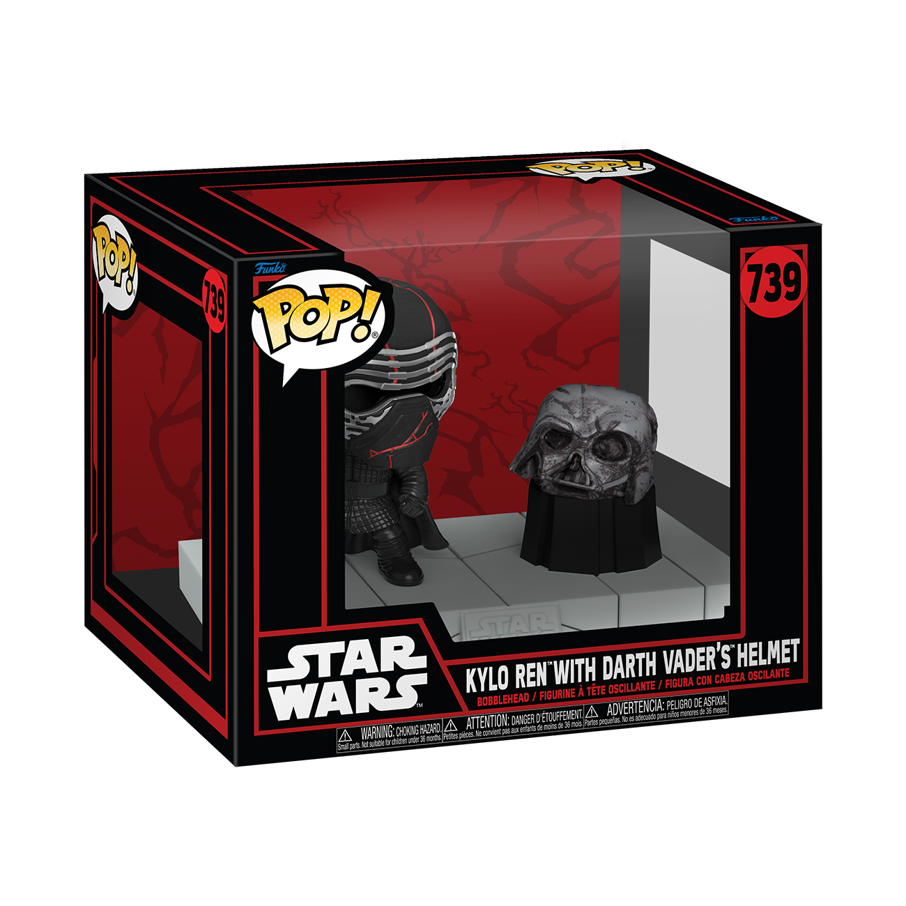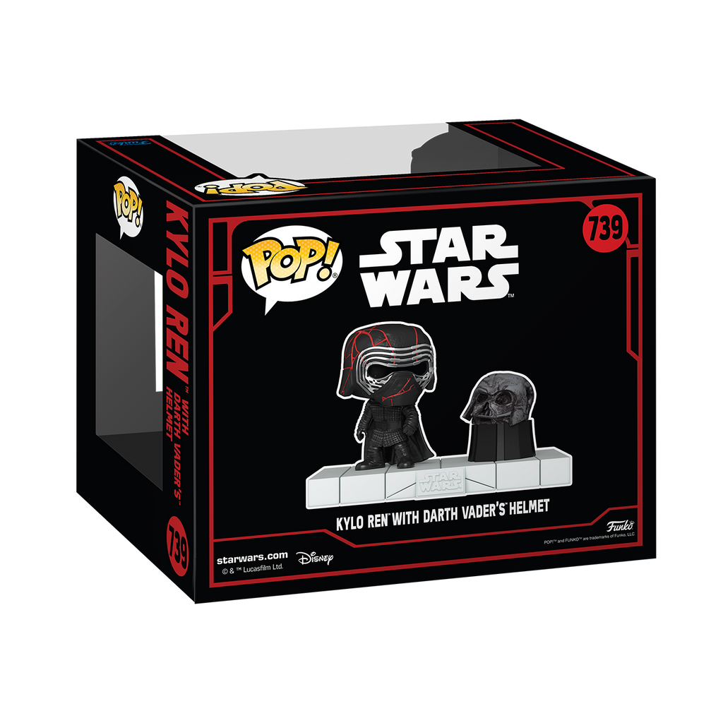 Join the Dark Side with Pop! Kylo Ren as he holds the helmet of Darth Vader!