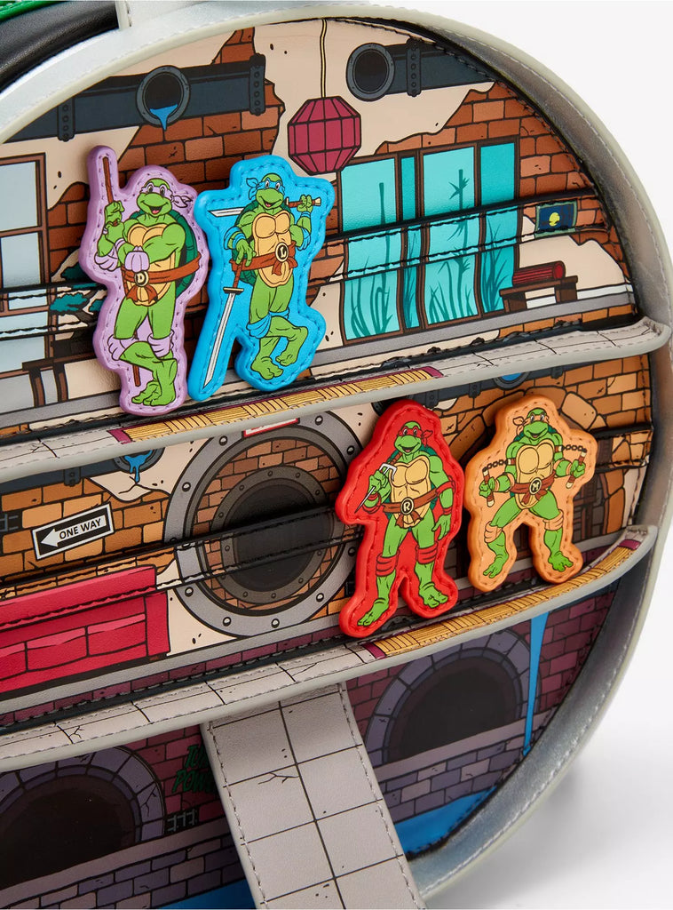 This Teenage Mutant Ninja Turtles mini backpack looks like a manhole cover. Open up the front flap to get an inside view of the sewer the turtles live in. You'll even find you can move them back and forth throughout the scene!