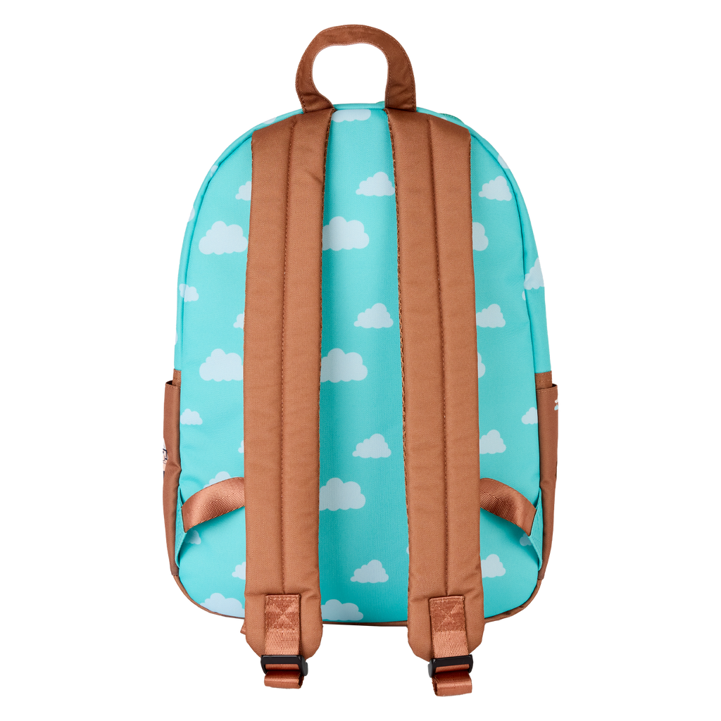 This full-size bag is inspired by Disney-Pixar's Up. The front of the bag features an all-over print of clouds in a clear sky. The front pocket features Carl's house, above which extends an applique of balloons. Check out the side pockets to find images of some of your fav characters!