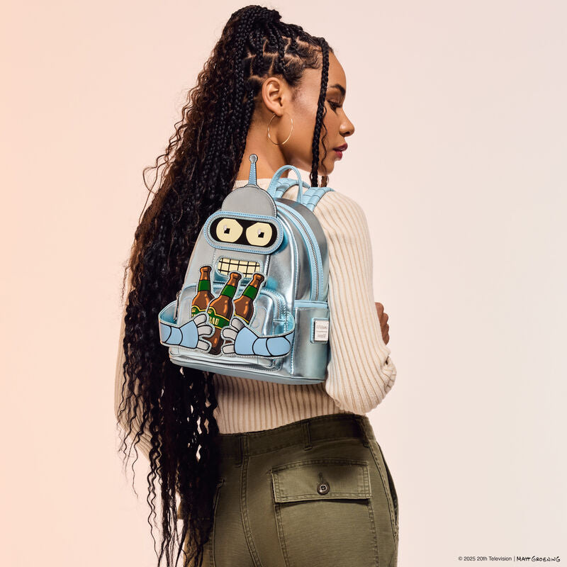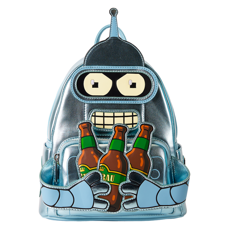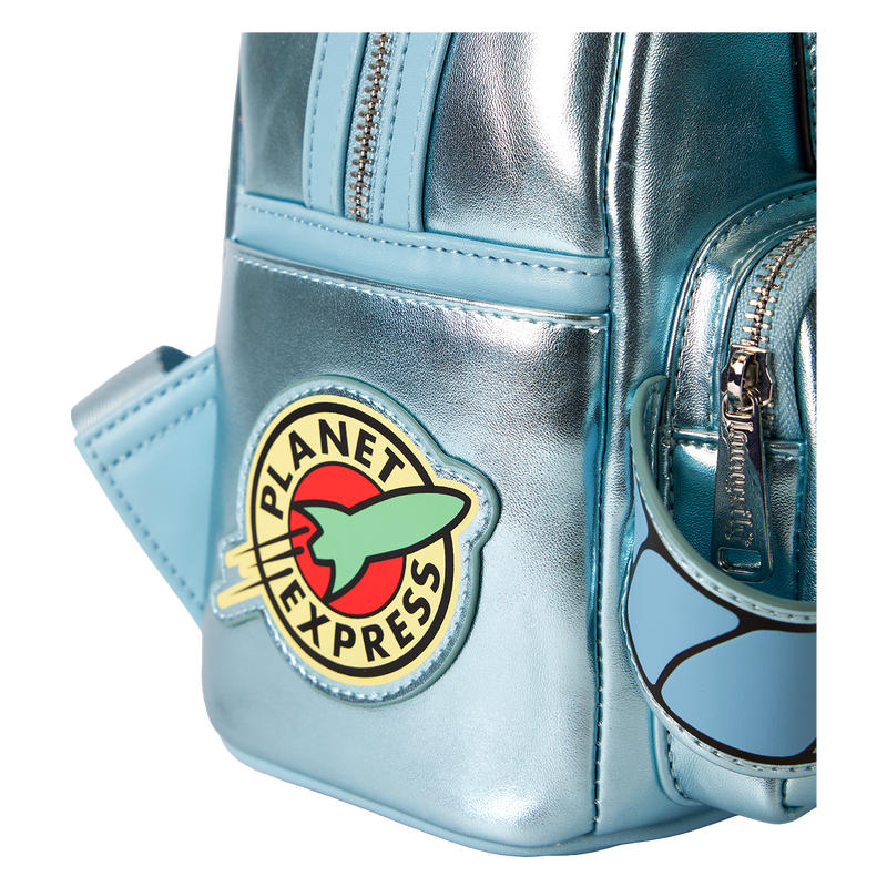 Load the spaceship with provisions and take off for the 31st century in style. Bender’s got you covered when you take along this exclusive mini backpack. The entire bag shines in metallic faux leather, and a Planet Express applique appears on one of the side panels. Gather your daily essentials and set off for fashionable futuristic fun!